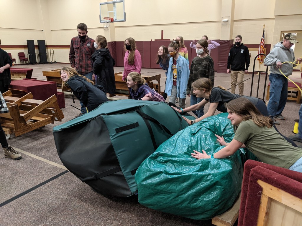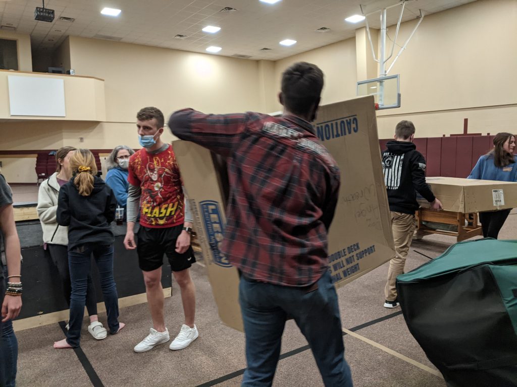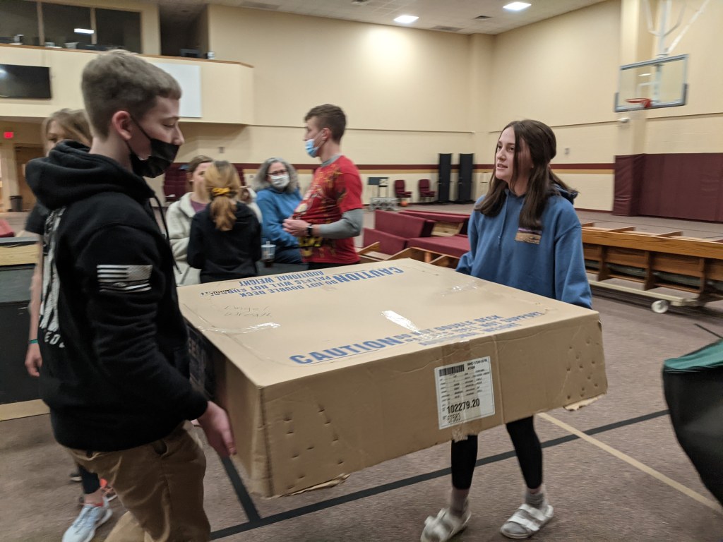 The youth of Eaton Community Church spent the month of March serving in different capacities in place of their normal gatherings on Sunday evenings. On March 7th, we served the church by clearing out the items underneath the stage and organizing the barn.