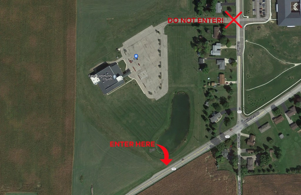 We are looking forward to worshiping the Lord with you this coming Sunday, and are continued to be excited about what God is doing here at Eaton Community Church. We are sorry for this inconvenience, but are confident the parking lot will be completed the following Sunday (Aug. 8)