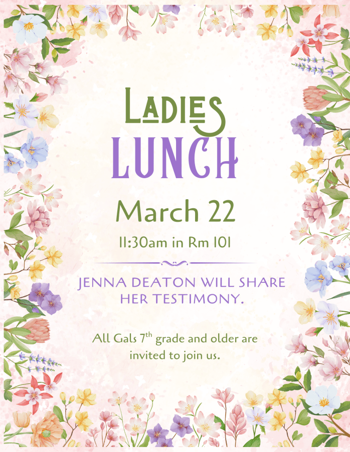 (For Ladies and Girls 7th grade through Adult)
