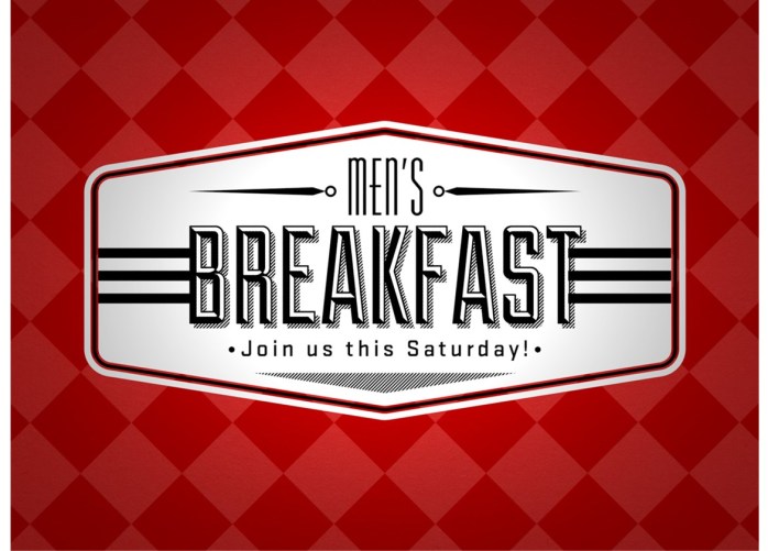Men’s Breakfast is Saturday, May 6, Rm 101, 8-9am. Doors open at 7:30am.